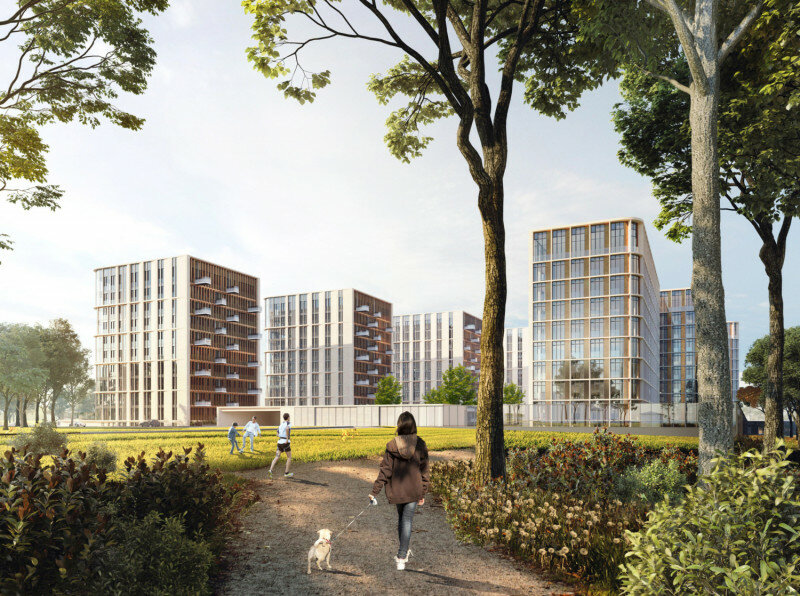 Приватная территория проекта обеспечивает необходимую тишину и безопасность. А тщательно выверенная дистанция между восемью корпусами поддерживает защищенность частной жизни резидентов и внутри ЖК.